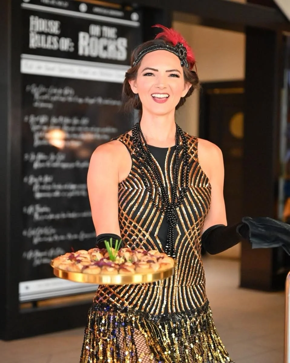 Our spectacular Roaring Twenties show will transport your audience to an era where champagne flows and the party never stops! This immersive experience blends interactive performers, Charleston dancers, glittering fire dancers, and jaw-dropping aerialists pouring champagne from the air.